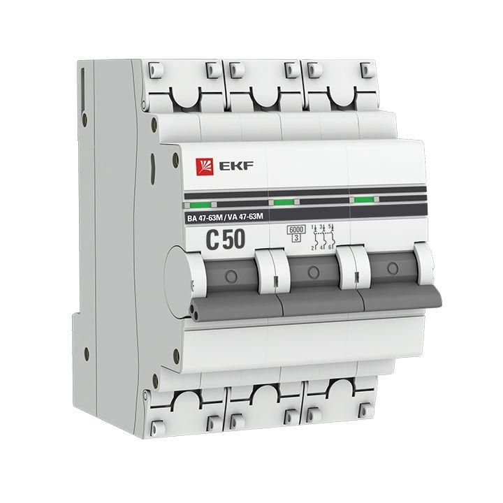 Автоматический выключатель 3P 50А (C) 6кА ВА 47-63M c электромагнитным расцепителем EKF PROxima - mcb4763m-6-3-50C-pro