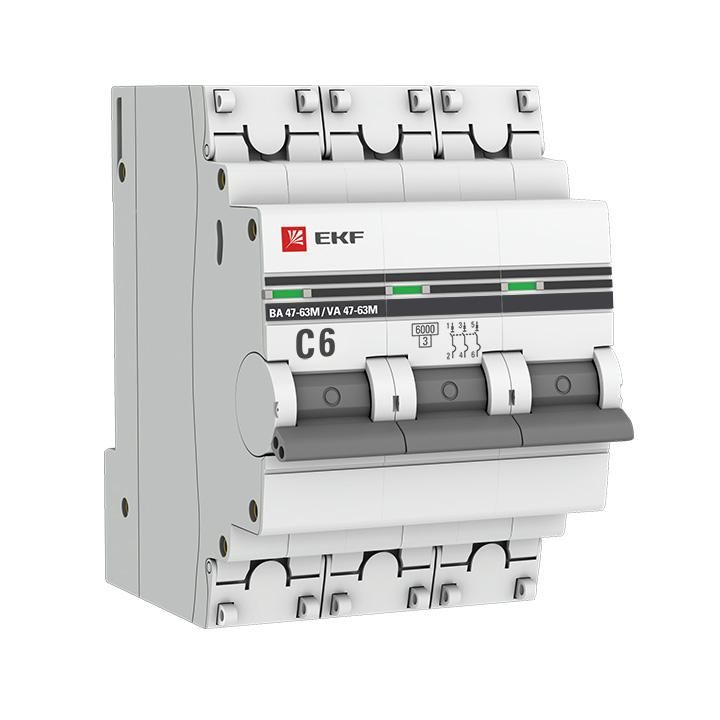Автоматический выключатель 3P 6А (C) 6кА ВА 47-63M c электромагнитным расцепителем EKF PROxima - mcb4763m-6-3-6C-pro