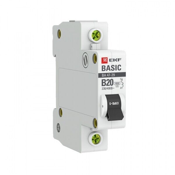 Автоматический выключатель 1P 20А (B) 4,5кА ВА 47-29 EKF Basic|mcb4729-1-20-B|EKF