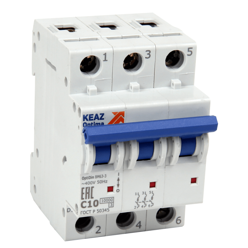 Выключатель автоматический модульный 3п D 1А 10кА OptiDin BM63-3D1-10-УХЛ3 КЭАЗ 249203