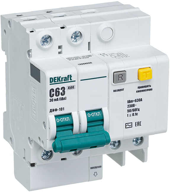 | Автоматический выключатель дифференциального тока 2П 63А 30мА DEKraft тип AC характеристика С ДИФ-101 4,5кА | 23.03.2026 | 1 шт. | 1 362,67 ₽ | шт. | от 3 дней |