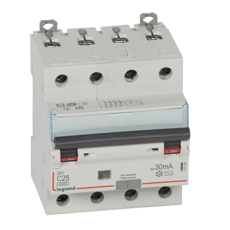 Выключатель автоматический дифференциального тока DX3 6000 4п 25А С 30мА тип AС | 411188 Legrand