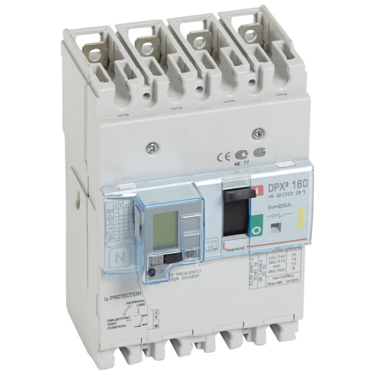 Автоматический выключатель DPX3 160 - термомагн. расц. с диф. защ. 16 кА 400 В~ 4П 25 А | 420031 Legrand