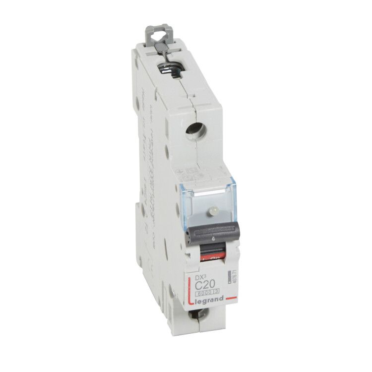 Автоматический выключатель однополюсный 20А тип C 10кА 230/400В~ 1 модуль DX3 6000 защищает однофазные цепи от перегрузок и коротких замыканий. Он используется в распределительных щитках жилых домов, офисов, производственных помещений и объектов инфраструктуры. Подходит для защиты освещения, розеточных групп, бытовой техники и маломощного оборудования.