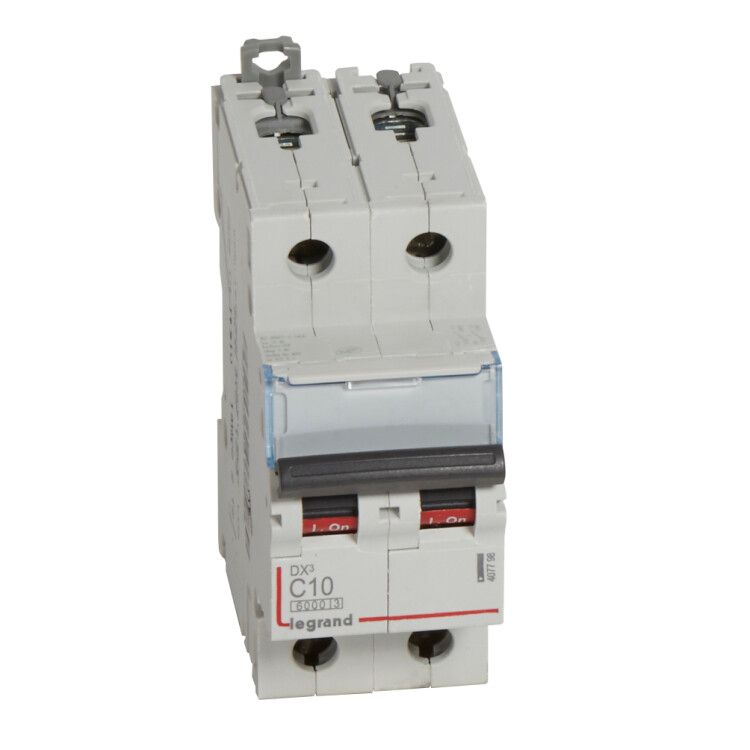 - Для защиты от утечек тока обязательно добавьте УЗО перед этим автоматическим выключателем двухполюсным 10 А, тип характеристики C, 10 кА, 230/400 В~, 2 модуля, серия DX3 6000