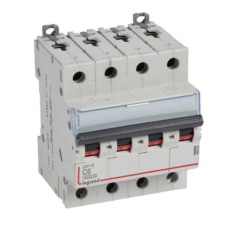 Автоматический выключатель четырехполюсный DX3-E 6А C 6кА от Legrand предназначен для защиты и управления электрическими цепями в бытовых и промышленных системах. Этот выключатель обеспечивает надежную отсечку при перегрузках и коротких замыканиях, монтируется на DIN-рейку и совместим с сетями переменного тока до 400 В.