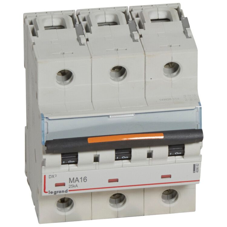 Выключатель автоматический трехполюсный DX3 16А MA 25кА (4,5 мод) | 409882 Legrand