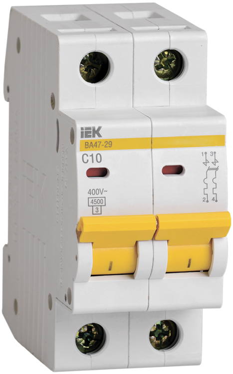 Выключатель автоматический двухполюсный ВА47-29 10А C 4,5кА KARAT | MVA20-2-010-C IEK