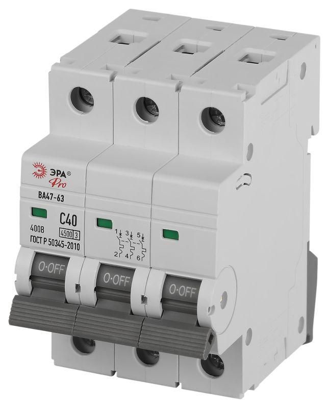 Автоматический выключатель PRO VA63-3P40C4.5 ВА47-63 3P 40А кривая C 4,5кА | Б0059441 ЭРА