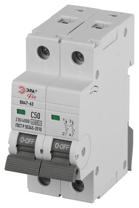 Автоматический выключатель PRO VA63-2P50C4.5 ВА47-63 2P 50А кривая C 4,5кА | Б0059427 ЭРА