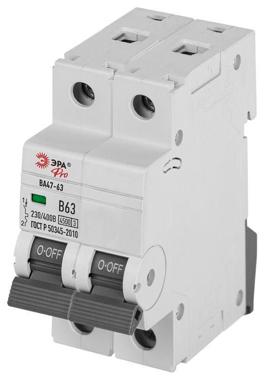 Автоматический выключатель PRO VA63-2P06C4.5 ВА47-63 2P 6А кривая C 4,5кА | Б0059418 ЭРА