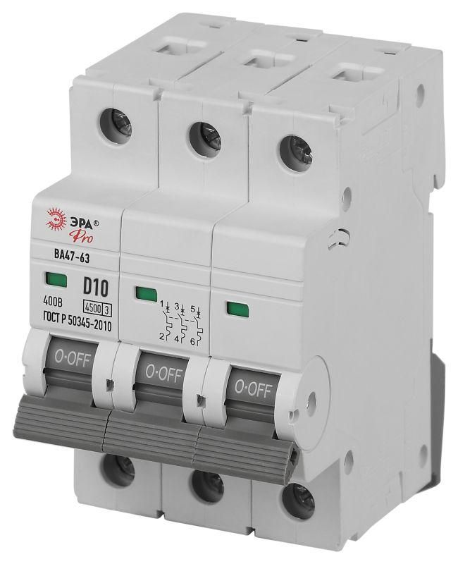Автоматический выключатель PRO VA63-3P10D4.5 ВА47-63 3P 10А кривая D 4,5кА | Б0059475 ЭРА