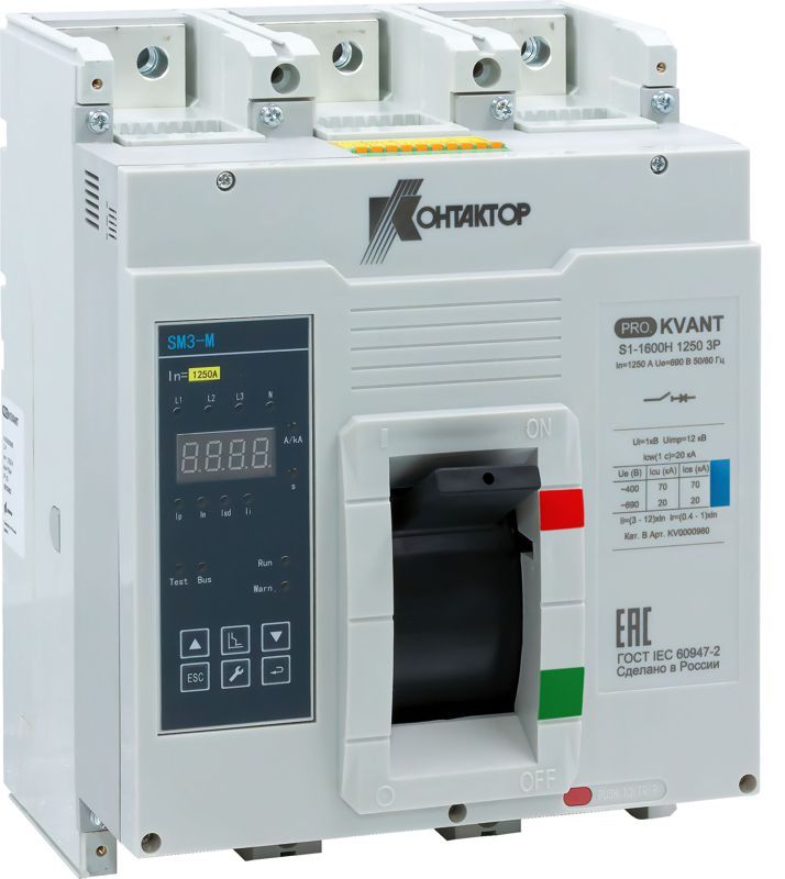 Автоматический выключатель S1-1600H 3P 800A 70kA в литом корпусе с электронным расцепителем - это надёжный коммутационный аппарат для защиты мощных электрических цепей в промышленных объектах. Произведённый компанией Контактор Ульяновск в рамках серии PRO.KVANT, он обеспечивает точную защиту от перегрузок, коротких замыканий и других аварийных режимов, сохраняя работоспособность оборудования даже при высоких токах КЗ.