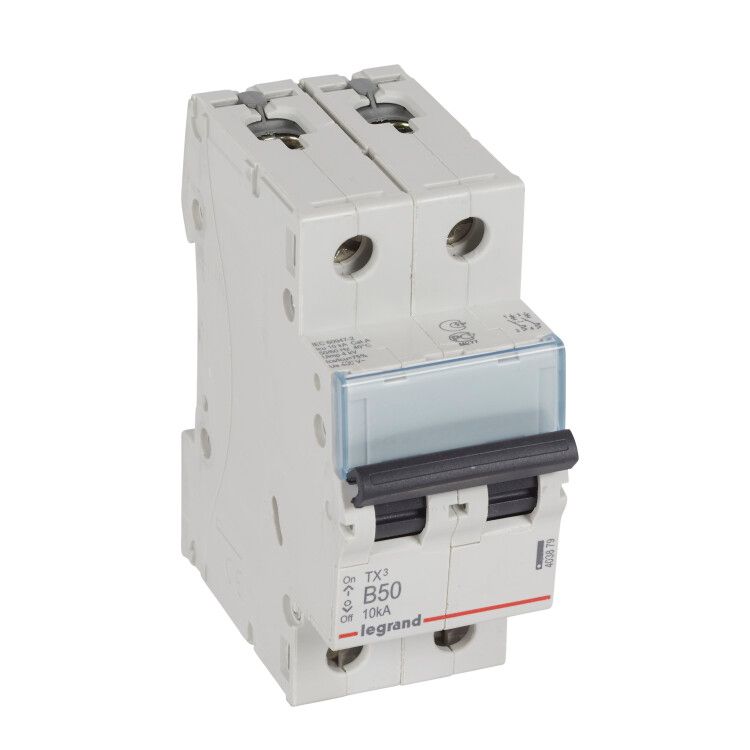 Автоматический выключатель TX 6000 - 10 кА тип характеристики B 2П 230/400 В~ 50 А 2 модуля 403879 Legrand