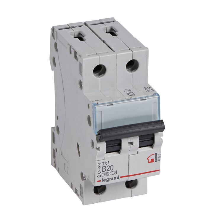 Автоматический выключатель TX 6000 - 6 кА тип характеристики B 2П 230/400 В~ 20 А 2 модуля 403987 Legrand
