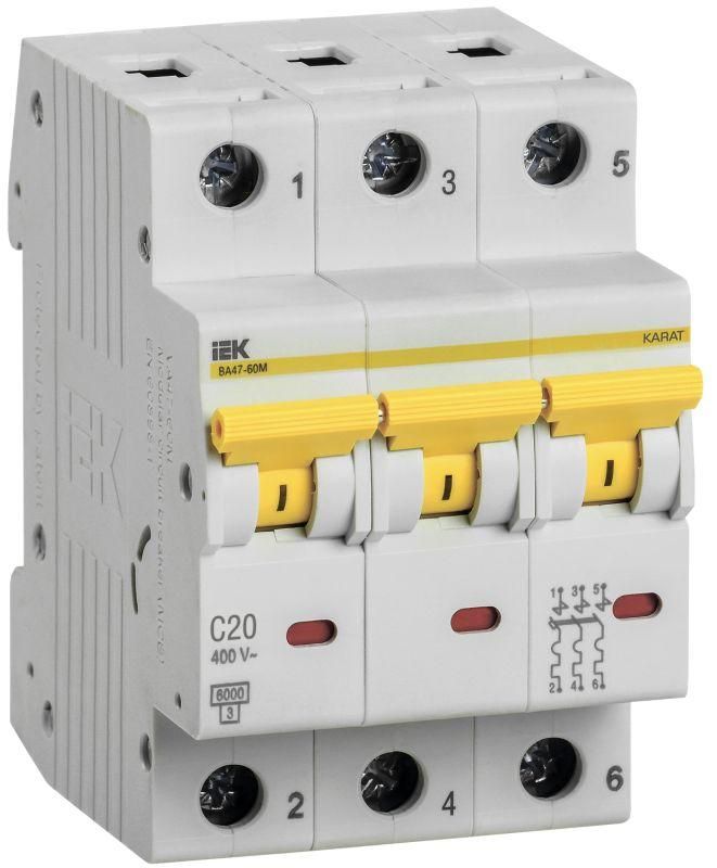 Выключатель автоматический модульный 3п C 20А 6кА ВА47-60M KARAT IEK MVA31-3-020-C MVA41-3-020-C