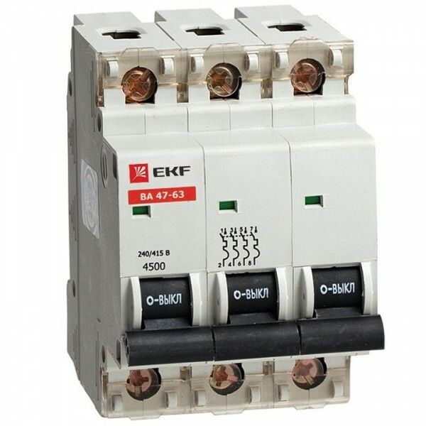 Автоматический выключатель ВА 47-63, 3P 20А (C) 4,5kA | mcb4763-3-20C EKF