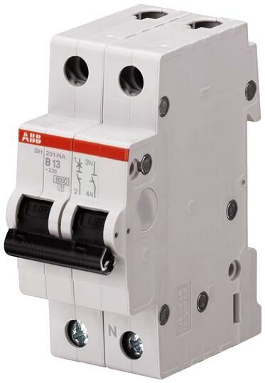Автоматический выключатель ABB SH201 NA - двухполюсный модульный аппарат с размыканием фазы и нейтрали, рассчитанный на ток 6 А и отключающую способность 6 кА. Подходит для защиты бытовых и легкопромышленных цепей переменного тока, особенно там, где важна безопасная коммутация нулевого провода.