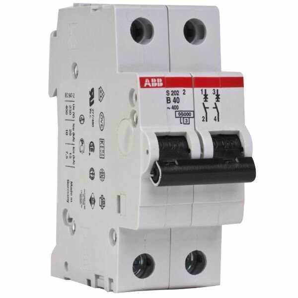 Выключатель автоматический двухполюсный S202M UC 6А C 10кА (S202M C6UC) | 2CDS272061R0064 ABB