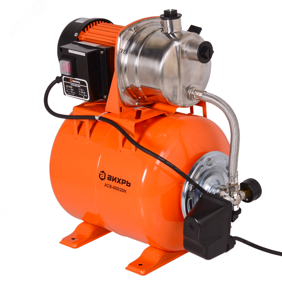 Автономная станция водоснабжения АСВ-600/20Н используется для автоматического поддержания давления в системе водоснабжения при использовании скважины, колодца или другого источника без напора. Подходит для дома, дачи, гаража или малых объектов, где требуется стабильный поток воды без постоянного контроля за работой насоса.