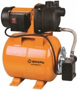Станция водоснабжения автономная АСВ-800/19, АСВ-800/20 ВИХРЬ - компактная насосная система для автоматизированного водоснабжения частных домов, дач и небольших хозяйств. Обеспечивает стабильное давление в системе за счёт встроенного гидроаккумулятора и автоматического управления. Бренд ВИХРЬ предлагает эту модель как надёжное решение для средних нагрузок с учётом ограниченной глубины забора воды.