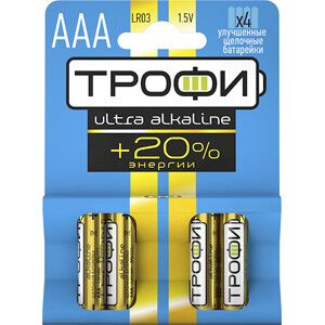 Батарейка щелочная (алкалиновая) LR03-4BL ULTRA (40/960/30720) (AAA) | Б0015137 ТРОФИ
