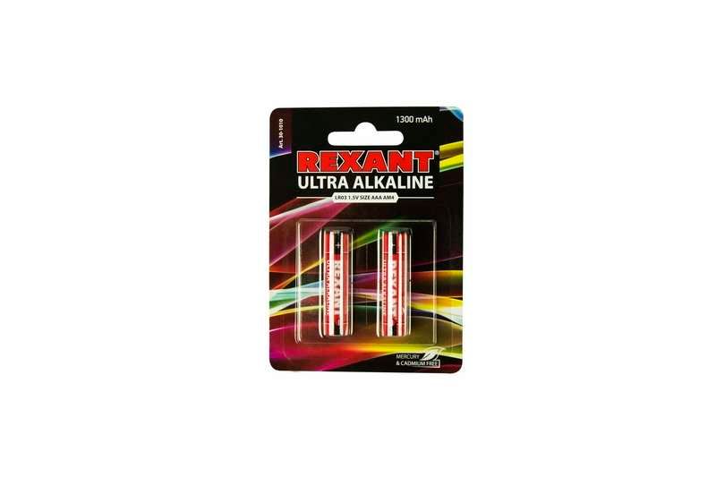 Элемент питания алкалиновый AAA/LR03 1,5 В 1300 мАч ультра (упаковка 2 шт) от REXANT - надёжный источник тока для устройств со средним и высоким потреблением энергии. Благодаря повышенной ёмкости и отсутствию токсичных компонентов, этот элемент питания подходит как для повседневного использования, так и для профессиональных задач.