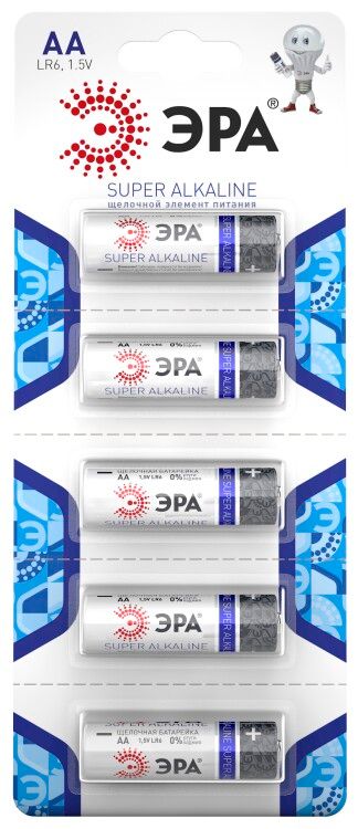 Батарейка щелочная (алкалиновая) LR6-5BL Strip (60/600/16800) AA от бренда ЭРА - одноразовый источник питания типа AA, предназначенный для устройств с умеренным и высоким энергопотреблением. Каждый комплект содержит 5 элементов в удобной ленточной упаковке с возможностью отрывания по одной. Артикул б0014475 соответствует серийному решению ЭРА SUPER Alkaline.