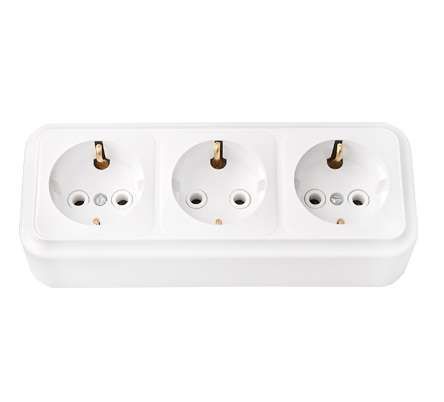 Розетка тройная с заземлением наружная 16А белая предназначена для подключения электроприёмников с напряжением до 250 В в условиях открытой установки. Подходит для использования на улице, в гаражах, мастерских, на производстве, в местах временного питания оборудования - например, для сварочных аппаратов, переносных светильников, насосов или электроинструмента. Благодаря наличию заземления обеспечивается безопасность при работе с металлическими корпусами приборов.