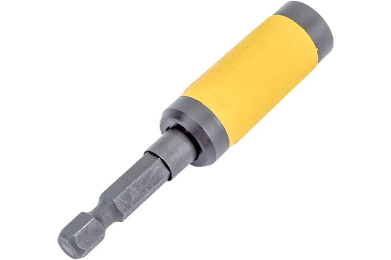 Подвижная втулка внутри битодержателя позволяет бите слегка перемещаться вдоль оси, что гарантирует плотный контакт с головкой винта даже при перекосах. Это особенно важно при работе с длинными или тяжелыми винтами, когда малейший перекос вызывает проскальзывание. Магнит удерживает биту в любом положении - вверх ногами, на стене или под потолком - без потери захвата даже на максимальных оборотах.