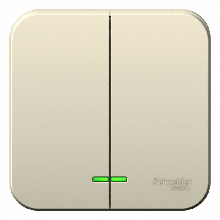 Выключатель наружный двухклавишный BLANCA (cх.5) с подстветкой, изолирующей пластиной, 6а, 250В, молочный - BLNVA065112 APC