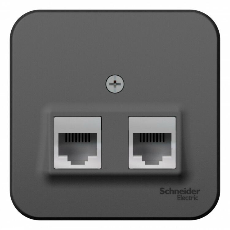 Розетка компьютерная + телефонная 2-м ОП Blanca RJ45 кат.5E RJ11 с изолир. пластиной антрацит SE BLNIA045116 APC