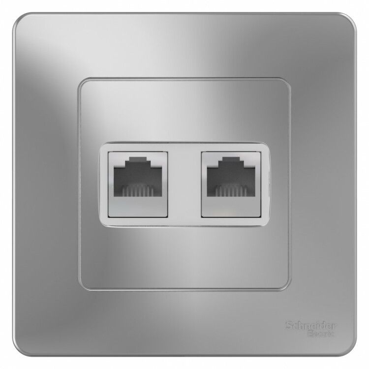 Розетка скрытой установки двойная компьютерная + телефонная, алюминий, RJ45 кат.5E + RJ11 от Systeme Electric (артикул blnis045113) - это компактный модуль для одновременного подключения сетевого оборудования и телефона через одну точку монтажа. Изделие входит в серию BLANCA и предназначено для внутренней проводки в жилых и офисных помещениях.