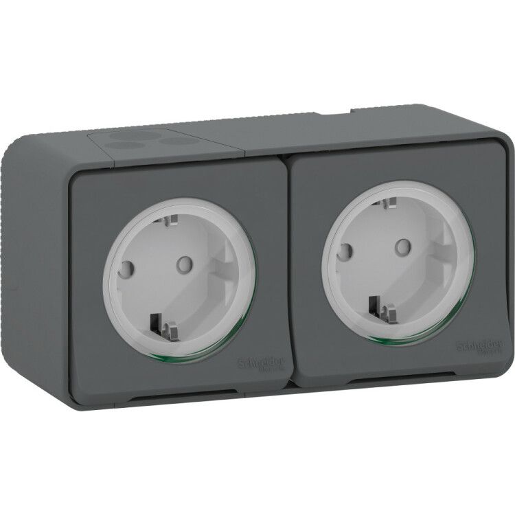 Блок розеточный 2-м ОП Mureva Styl 16А IP55 с заземл. защ. шторки антрацит SchE MUR36029 APC