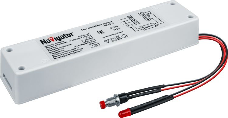 Блок аварийного питания Navigator ND-EF07 обеспечивает временную работу светодиодных светильников при отключении основного питания. Устройство совместимо со светильниками серии ND-EF мощностью до 48 Вт и рассчитано на 1 час автономной работы.