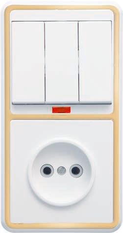 Блок БКВР-212 (3-клавишный выключатель с индикацией + розетка) золото от Кунцево-Электро - это компактный совмещённый модуль, сочетающий три клавишных выключателя с индикацией и одну розетку с заземлением. Подходит для установки в распределительных коробках жилых и офисных помещений, где требуется управление несколькими группами освещения и подключение бытовой техники.