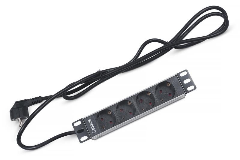 Блок евророзеток для 10' шкафов, горизонтальный, 4 розетки, 16 A, без выключателя, алюминиевый корпус, шнур 2 м, вилка немецкий стандарт - PDU-4P-2EU Cabeus 7981c
