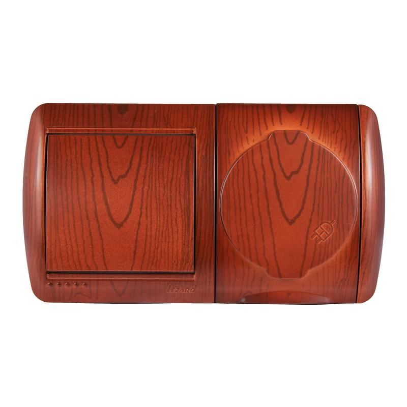 Блок ОП Nata (розетка евростандарт с заземл. защ. крышкой + 1-кл. выкл.) IP20 вишня LEZARD 710-0600-170