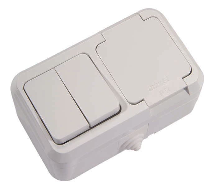Блок ОП IP44 бел. (2кл. выкл.+роз/крыш) Makel 18351