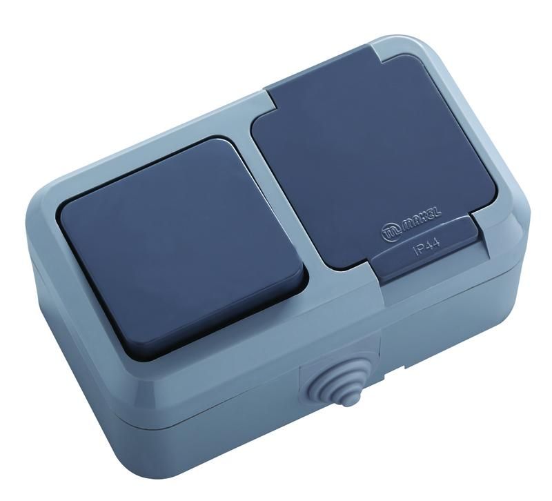 Блок комбинированный открытой установки Makel 18150 сочетает в себе выключатель и розетку в одном корпусе - удобное решение для быстрого подключения устройств на стене без необходимости в штроблении. Подходит для помещений с повышенной влажностью, таких как гаражи, бани или уличные зоны.