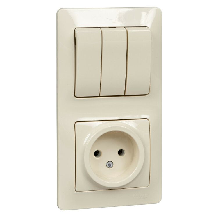 Блок комбинированный Systeme Electric серии GLOSSA (артикул gsl000276) сочетает в одном корпусе розетку с заземлением и трёхклавишный выключатель - решение для компактной и функциональной проводки в жилых помещениях. Подходит для скрытой установки в стену, особенно эффективен там, где требуется управление несколькими источниками света из одного места.