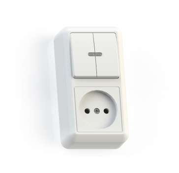 - Объединяет три функции - два выключателя и розетку - в одном корпусе, экономя место на стене