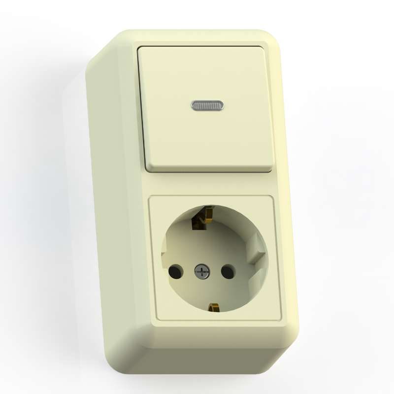 Блок комбинированный открытого установочного типа Кунцево-Электро ЗБКВР-432 сочетает в себе одноклавишный выключатель с подсветкой и розетку SCHUKO с заземлением - удобное решение для быстрого монтажа в помещениях с ограниченным пространством.