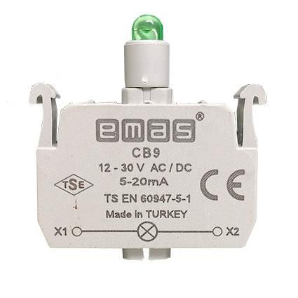 Блок подсветки светодиод зелёный цвет серия C 12-30В AC/DC - CB9 EMAS