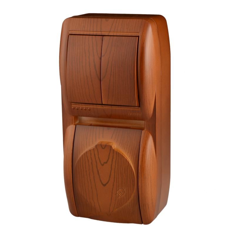 Блок Nata (розетка с заземл. защ. крышкой + 2-кл. выкл.) вертикал. сосна LEZARD 710-0800-173