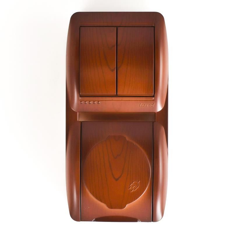 Блок Nata (розетка с заземл. защ. крышкой + 2-кл. выкл.) вертикал. вишня LEZARD 710-0600-173