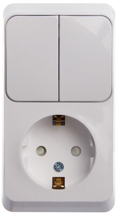 - Тип: моноблок - совмещённая розетка и выключатель в одном корпусе