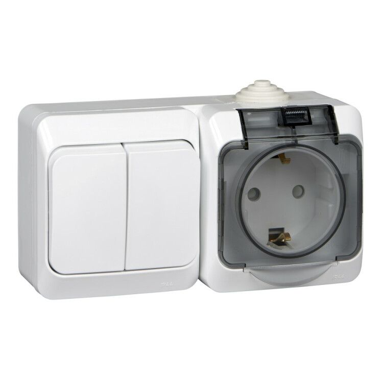 Блок комбинированный Systeme Electric этюд bpa16-242b объединяет розетку с заземлением и двухклавишный выключатель в одном корпусе - идеальное решение для наружной установки в условиях повышенной влажности, например, на балконе, в гараже или ванной комнате.