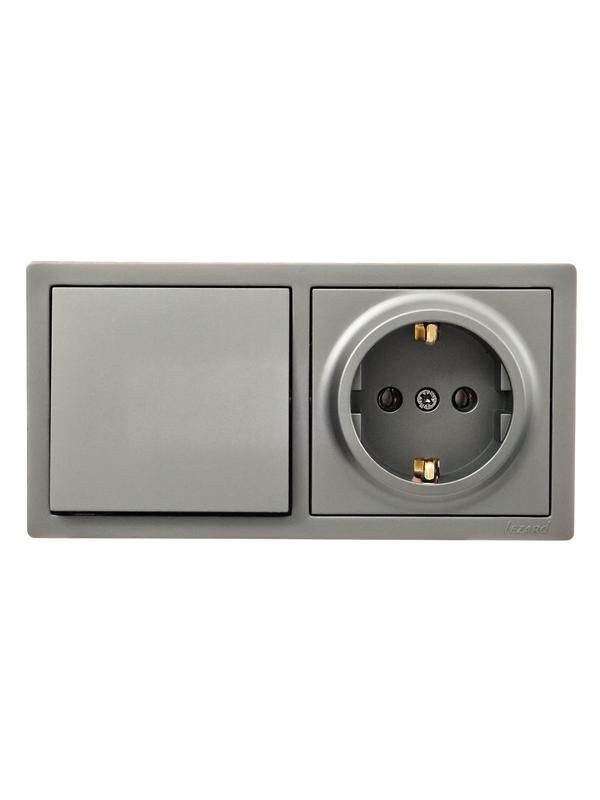 Блок выключатель 1-клавишный и розетка 1-местная с заземлением горизонтальный от бренда LEZARD (артикул 752-3500-170bap) сочетает в одном корпусе управление освещением и подключение бытовой техники с заземлением - идеальное решение для установки на поверхность стен в жилых и офисных помещениях.