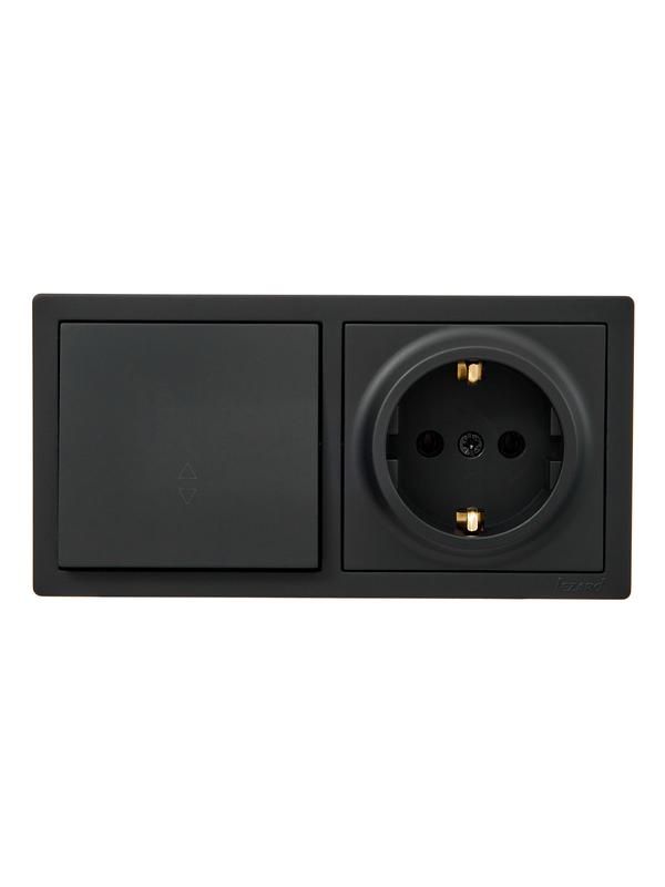 Блок ОП LETO (1-кл. выключатель проходной + 1-м розетка с заземл.) горизонт. черн. бархат LEZARD 752-4200-170BVP